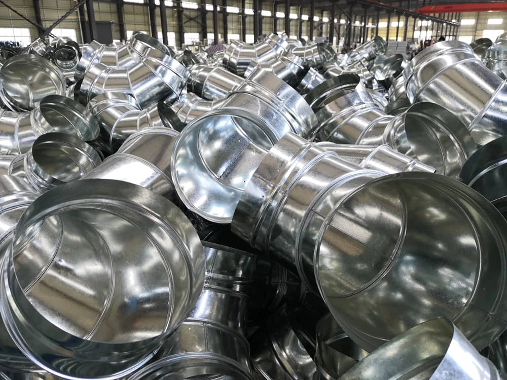 镀锌铁皮风管是以镀锌铁皮为主要原材料。经过咬口、机械加工成型;具有现场制作方便。而且同时具有可设计性,是传统的通风、空调用管道,同时随着技术的发展由以前的手工制作改变为现在的全部机械化生产。具有产能高,加工尺寸精良等优点。风管又叫镀锌铁皮风管。是用于空气输送和分布的管道系统。风管可按截面形状和材质分类。按截面形状,风管可分为圆形风管,矩形风管,扁圆风管等多种,其中圆形风管阻力较小的高度尺寸,制作复杂。所以应用以矩形风管为主。按材质,风管可分为金属风管,复合风管,索斯风管等。